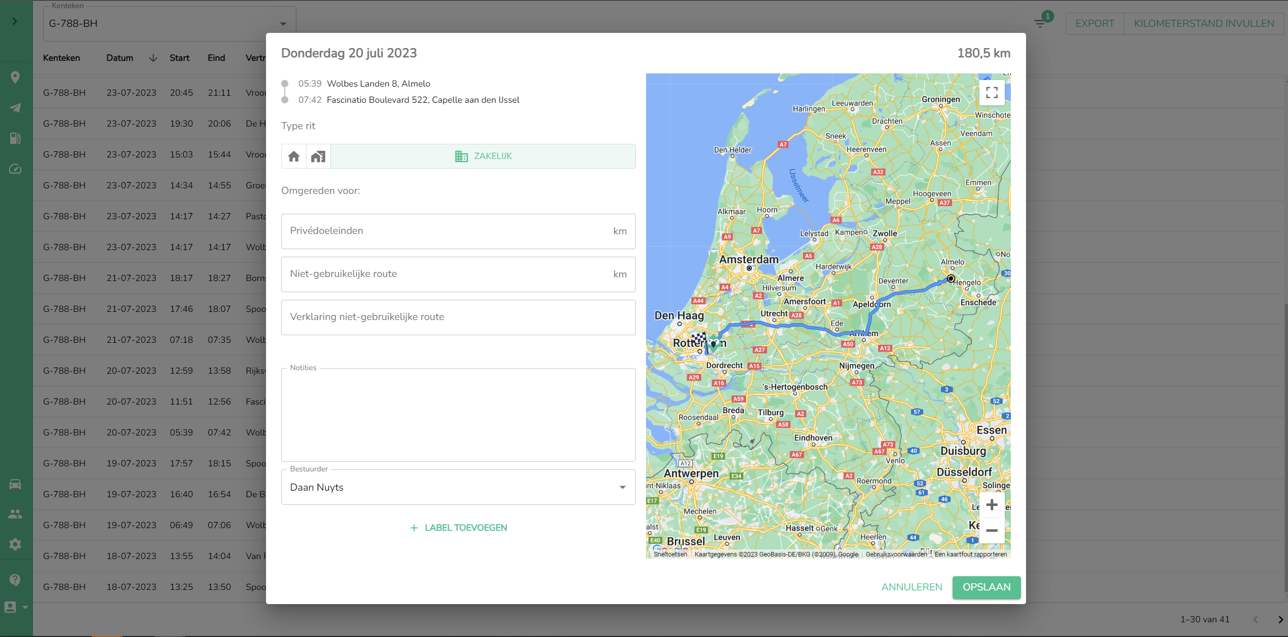 Fügen Sie einfach eine Notiz oder einen Fahrer zur ausgewählten Fahrt hinzu. Oder versehen Sie die Fahrt mit einem Label und einem Wert. Diese Daten werden auch beim Export berücksichtigt.