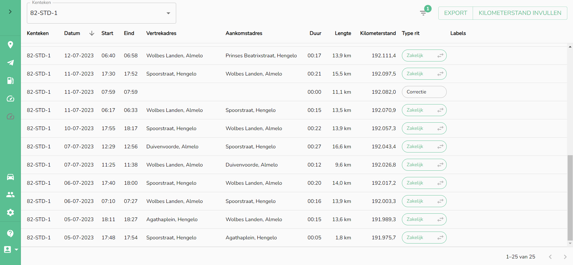 Mit der Filter-Schaltfläche können Sie sich ausschließlich Korrekturfahrt-Einträge anzeigen lassen.